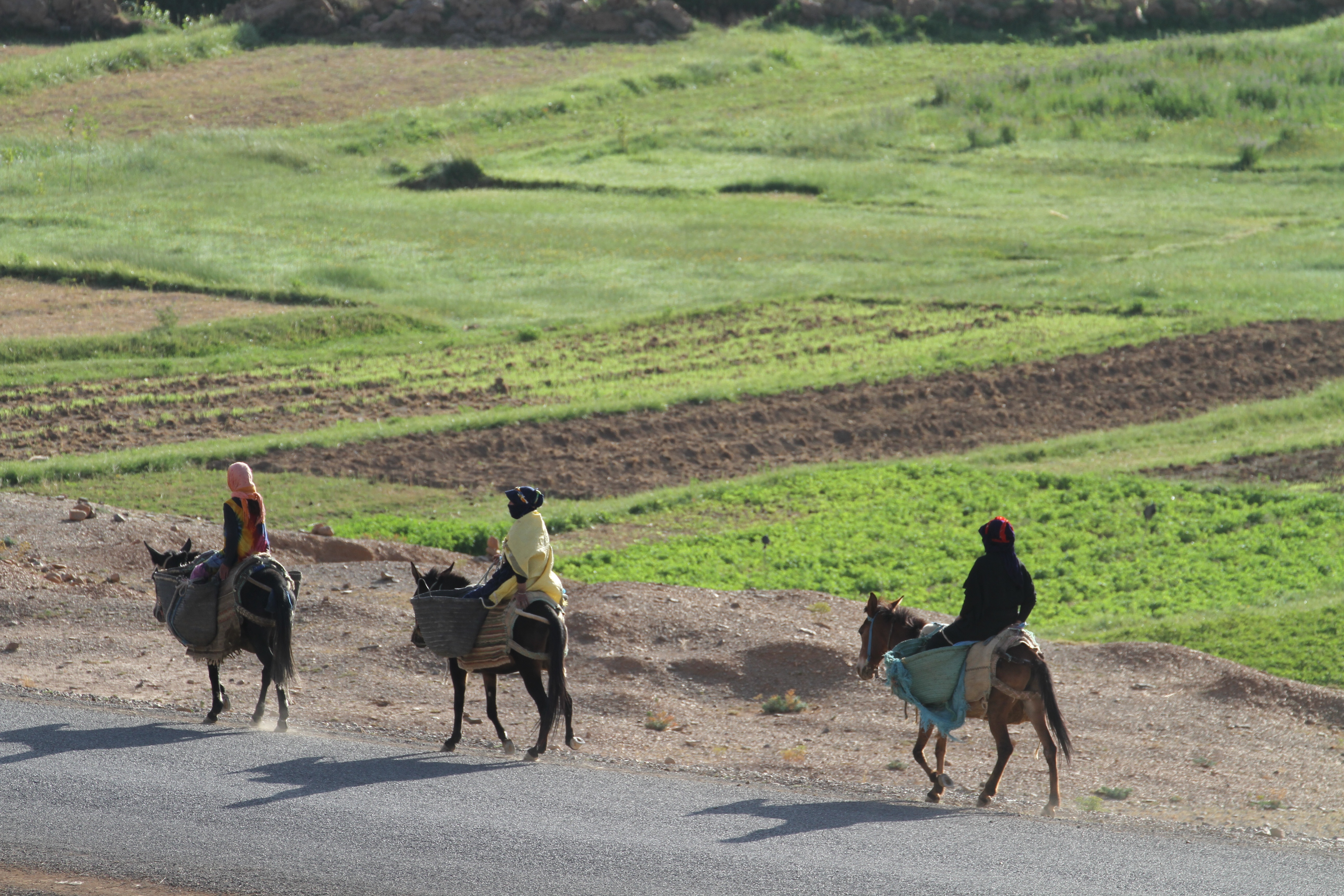 We awake to the hustle and bustle of a sleepy Moroccan town on its way to work, which for the most part means or going into the fields or taking produce to market. Compared to our hectic cities, this is a rather casual affair.