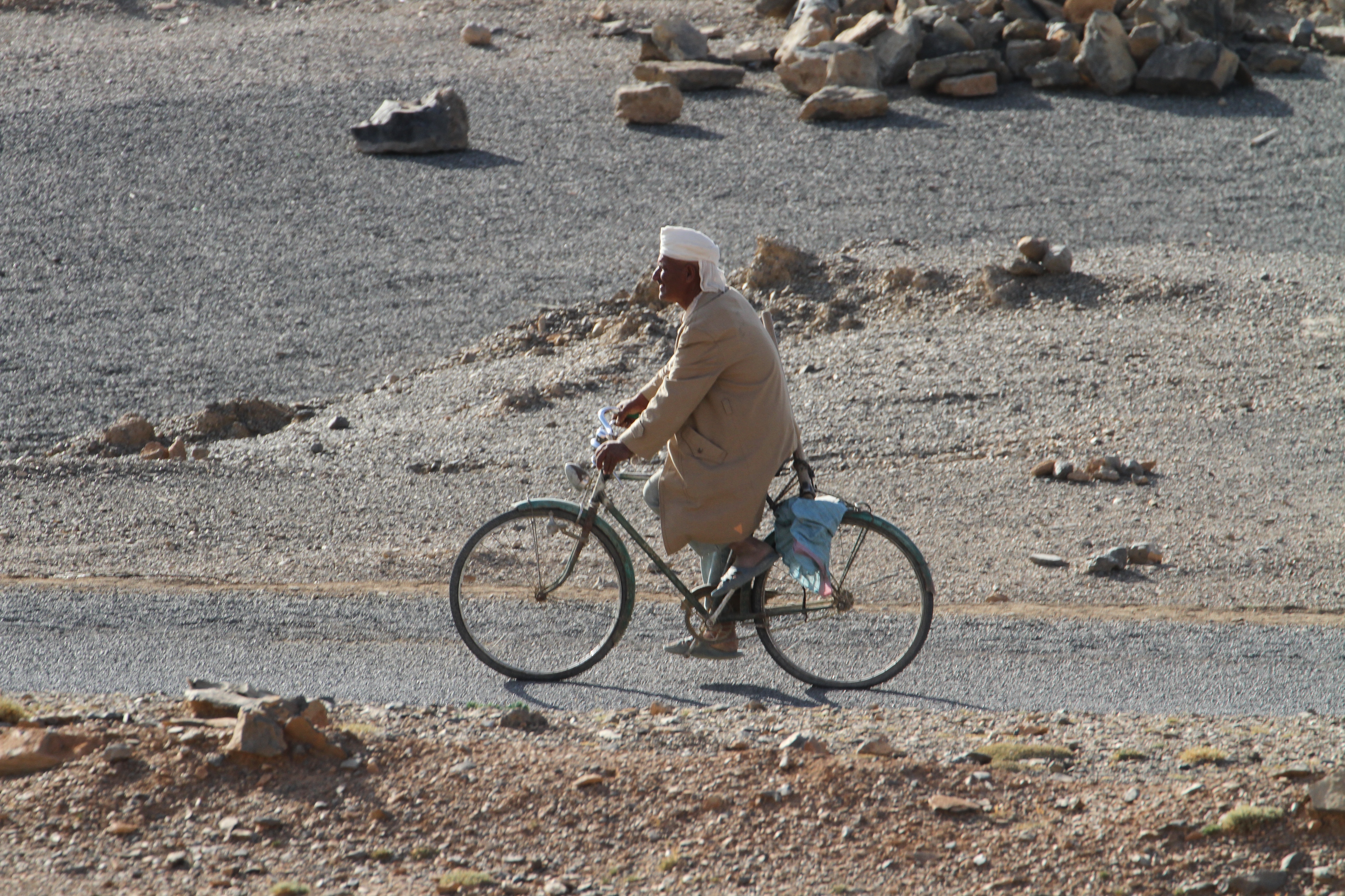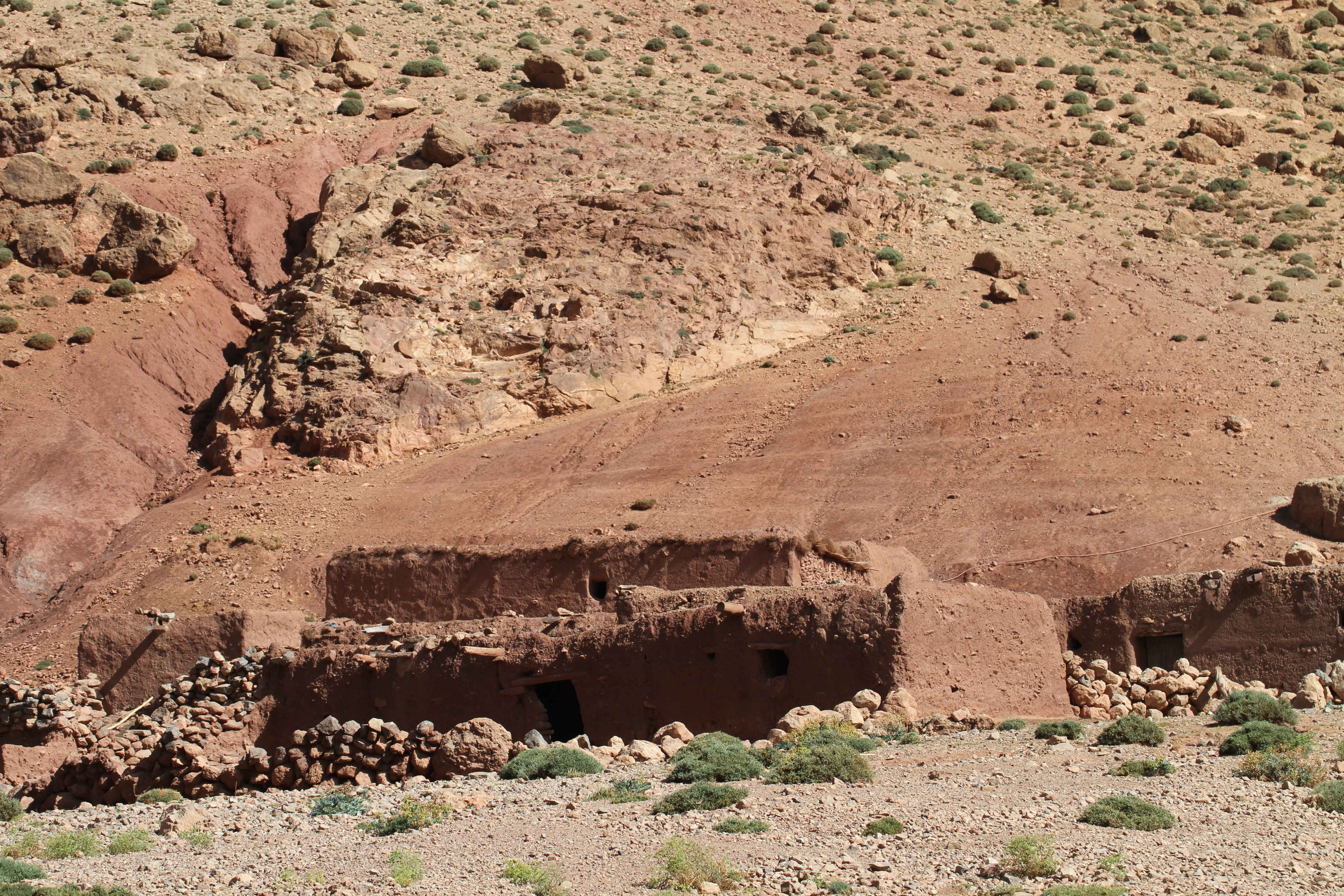 So we packed up campsite again and continued our trip, this time continuing in the dark trying to find a Gite or hotel to stay. But we are in the middle of the Atlas, there isn’t much. Eventually towards midnight we end up on a road that is barely drivable. It turns out the next morning that in fact it was a pass under construction. The only other vehicles driving that road are caterpillars :-).