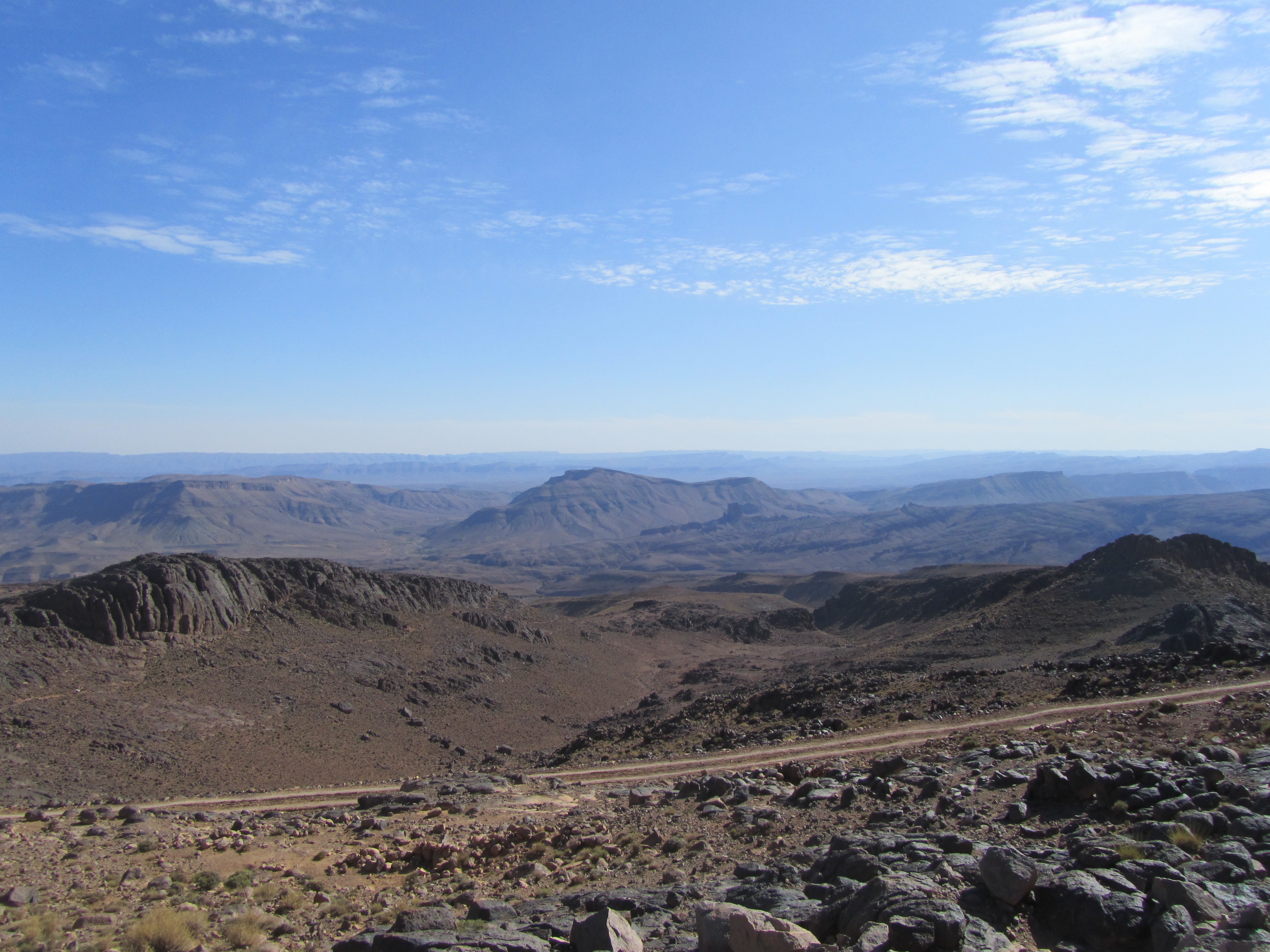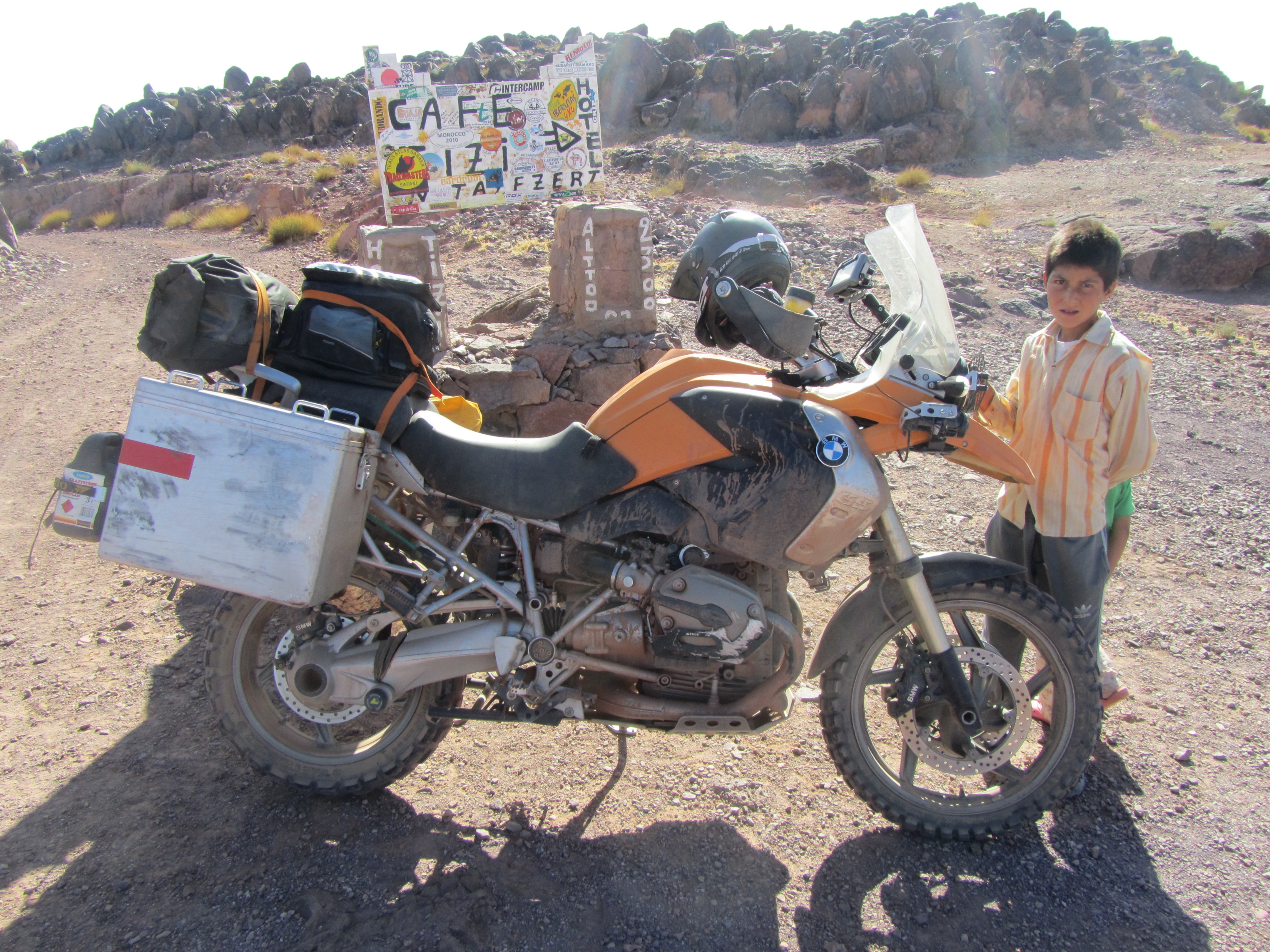 At the top of the mountain is Tizi-n Tazazert I stop to show the boy who had sold me a knife for not a small sum (that subsequently separated blade from shaft) how to fix it properly using steel wire. I also show him photos and video’s on the iPad. The speed of learning of this boy is incredible, or perhaps he was part of the Apple development team for intuitive control design!… I am told he goes to school, anything else would be a pity for such a bright kid. And if he is bright, his little sister scores full points on curiosity!