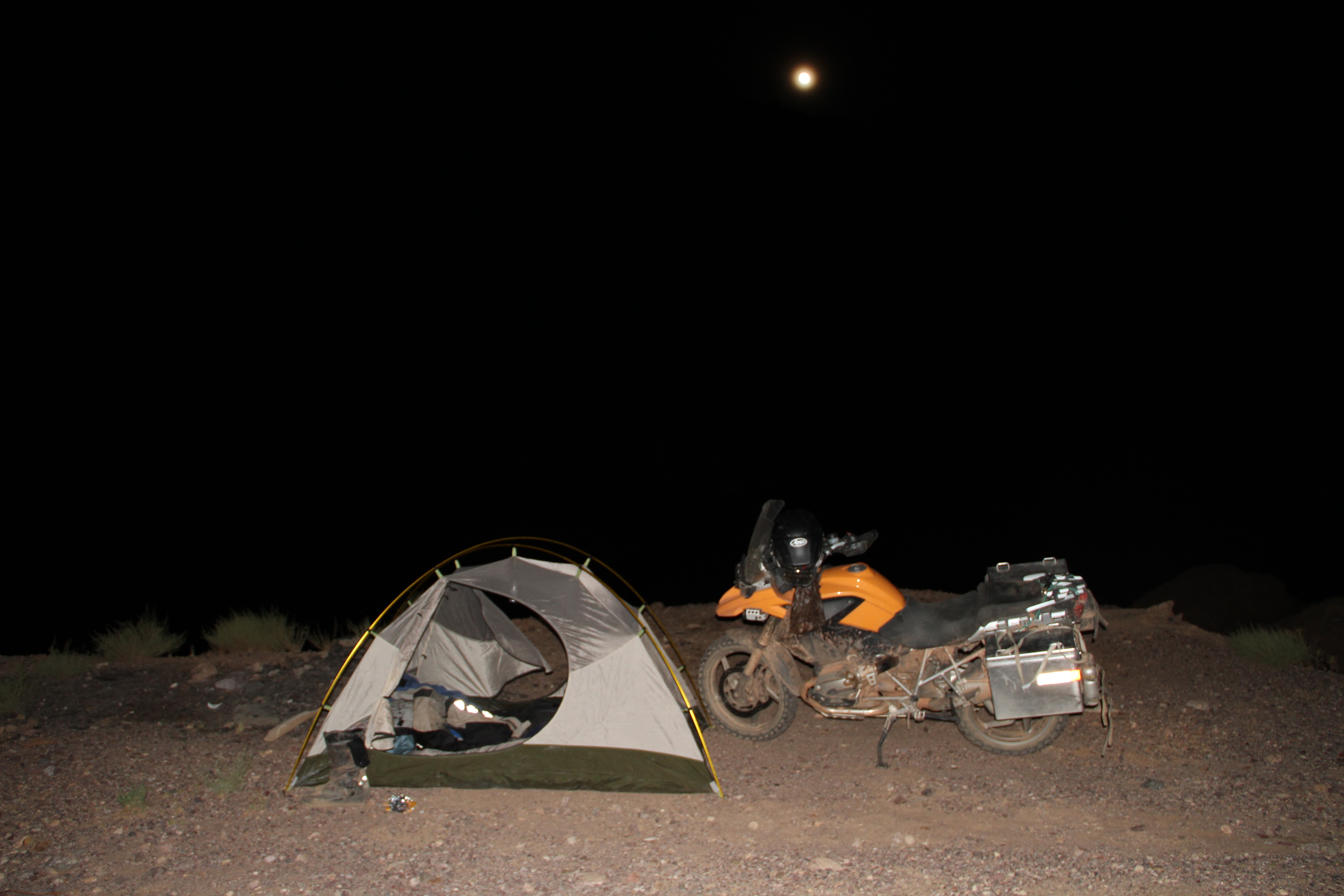 This time I set up camp with the tent, am invited for coffee and briefly rattle some berber girls because I ask if the fruit of the tree they are sitting under are edible and eat one of them. Tonight I am treated to a bright full moon lighting up the valley, a pleasant temperature, a light wind and complete silence – in short a tranquil serenity.