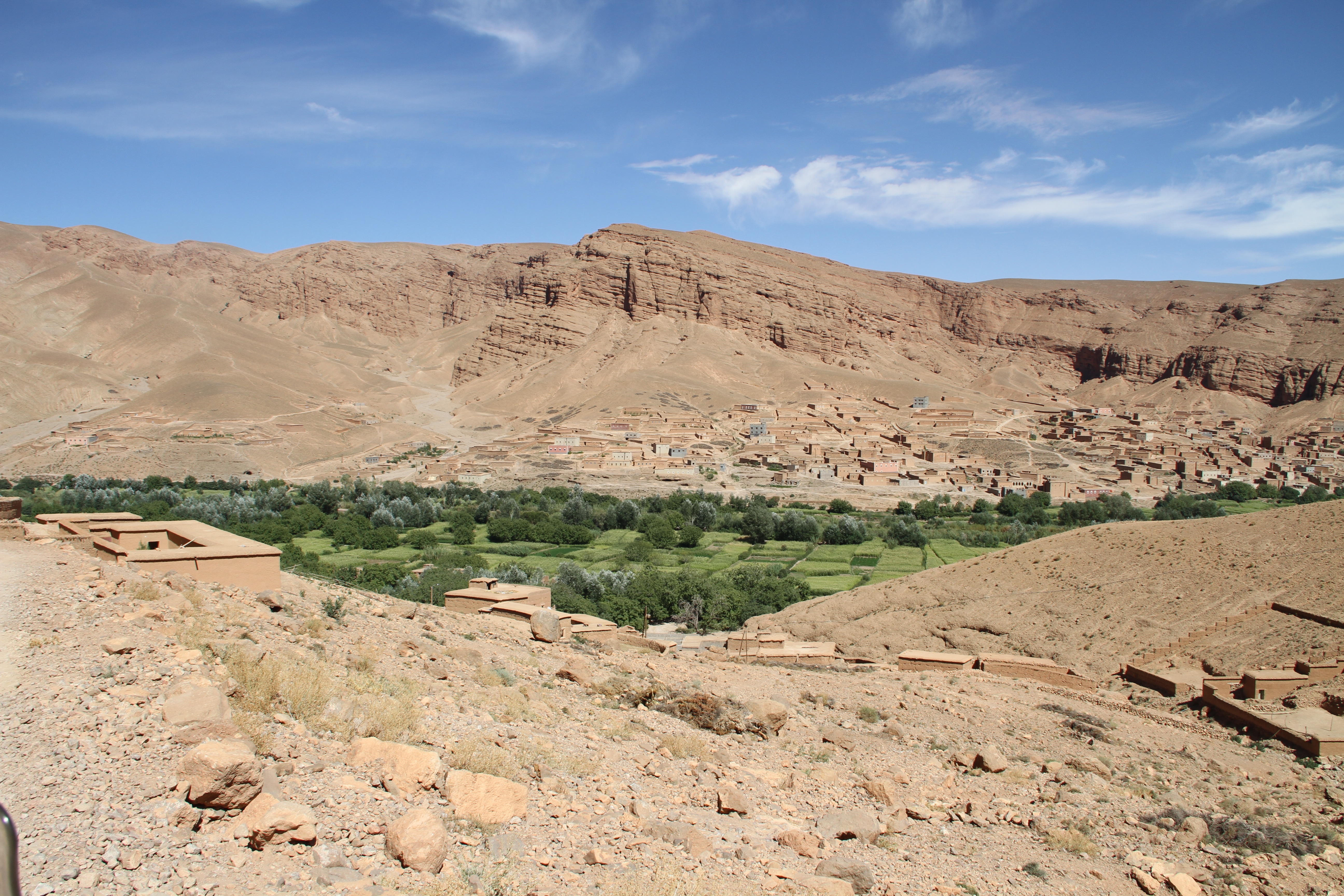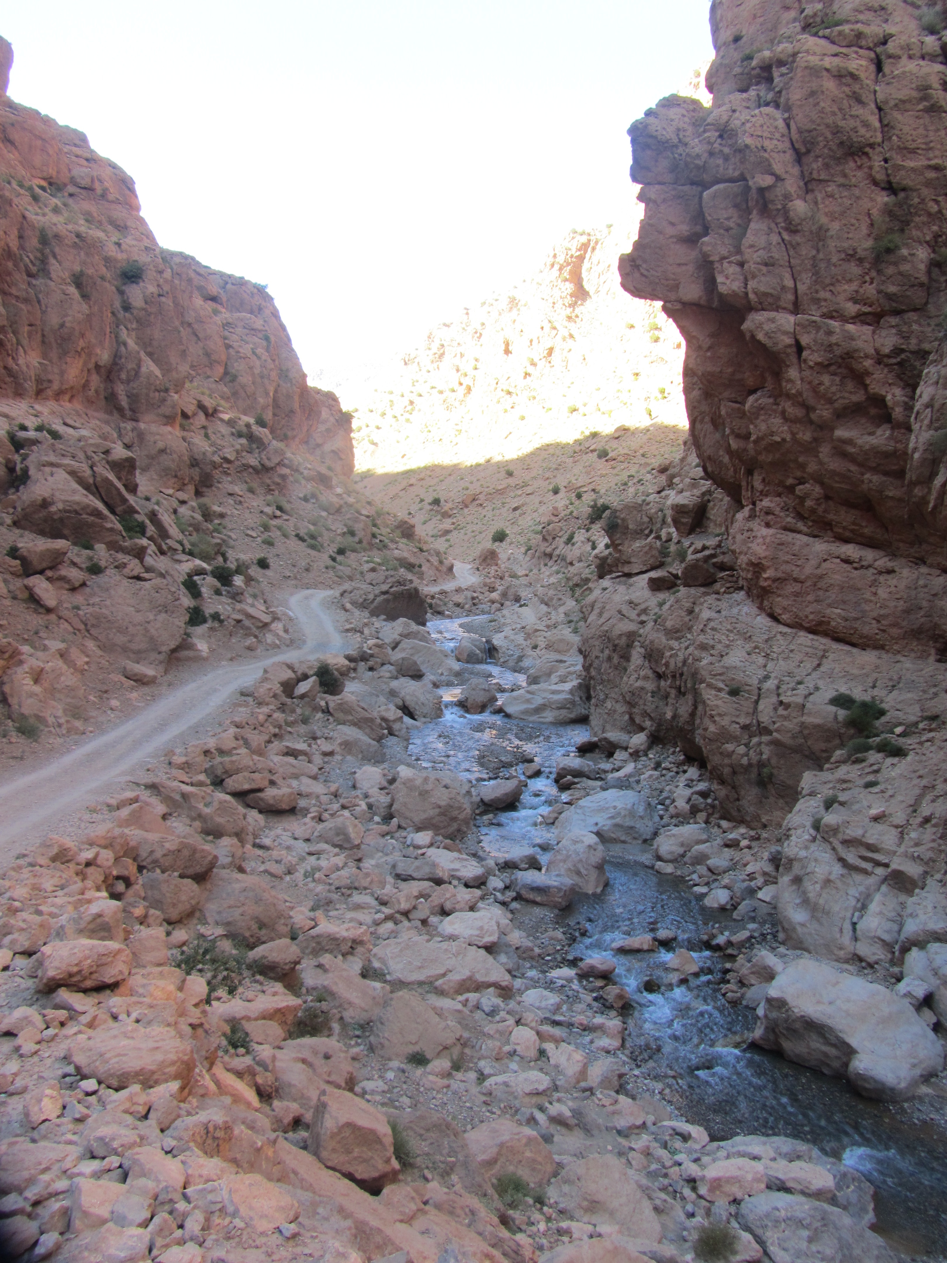 After a brief pause in Boumaine Dades, I decide to travel a Northern route via Bou-Thrarar to El-Had. The first piste between Äit-Youl and Bou-Thrarar leads from the Qued Dades to the Asif M’Goun, both two large rivers cutting their path through the mountains, leaving deep and steep gorges and fertile soil for the inhabitants of their valleys. You have to know that the route is there, since the start looks unobtrusive and there are no signposts. The piste is a wonderful drive, and I realize I must be on a lesser travelled but touristic road, judging by the amount of tourist 4×4’s coming my way. In Bou-Thrahar I stop by a river and immediately a guy starts talking to me in very good German. He is studying German in Agadir, and invites me for tea at his home. I have given him my number and Facebook details, but as of two days later he has not contacted me. After an interesting conversation I continue, and am again confirmed in my belief of the hospitality of the people.